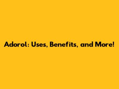 Adorol: Uses, Benefits, And More!