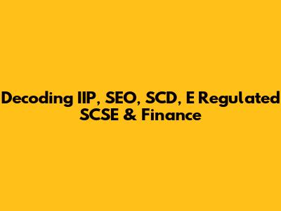 Decoding IIP, SEO, SCD, E Regulated SCSE & Finance