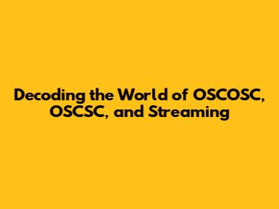 Decoding The World Of OSCOSC, OSCSC, And Streaming