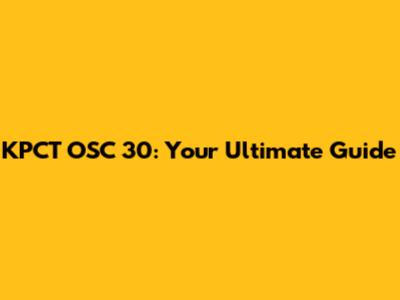 KPCT OSC 30: A Comprehensive Guide