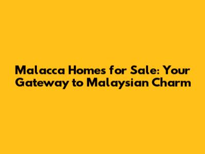 Malacca Homes For Sale: Your Dream Property Awaits!