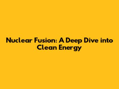 Nuclear Fusion: A Deep Dive Into Clean Energy