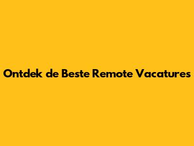 Ontdek De Beste Remote Vacatures